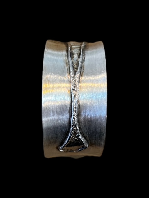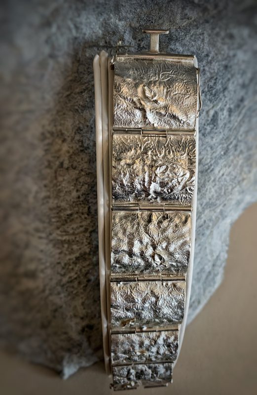 Current work is a part of a continuing textural exploration of the pattens of light and wind as they travel across the surface of water. The pieces all have a sense of raw energy, movement, and organic flow that is captured, contained and contrasted within the rigid structure of metal. Every design is a unique work of art.