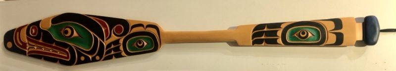 Kwakwaka’wakw Master Carver Bill Henderson was born in 1950 and is a member of the Wei Wai Kum First Nation in Campbell River, BC. Bill is one of seventeen children born to the artist Sam Henderson and his wife, May Quocksister Henderson. Several of his siblings became artists, including his brothers Ernie, Dan, and Mark.  His father Sam was originally from Ba’as (Blunden Harbour), on the north coast, but after marrying May settled in Campbell River. Bill watched his father create carvings and other artworks from a young age and by the age of seven Bill had created his first piece, a small whale plaque for his first-grade teacher.