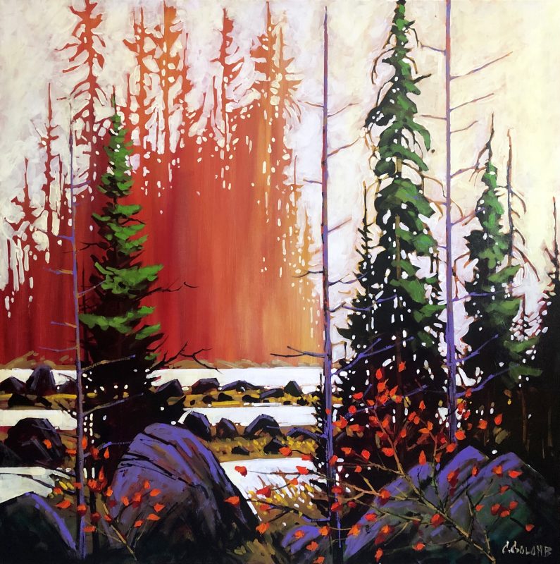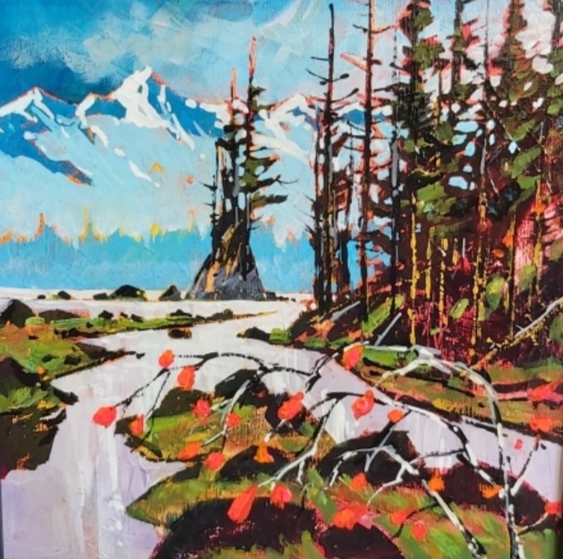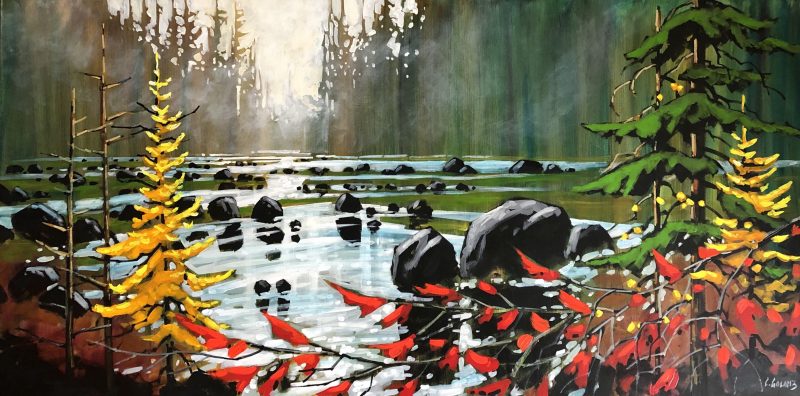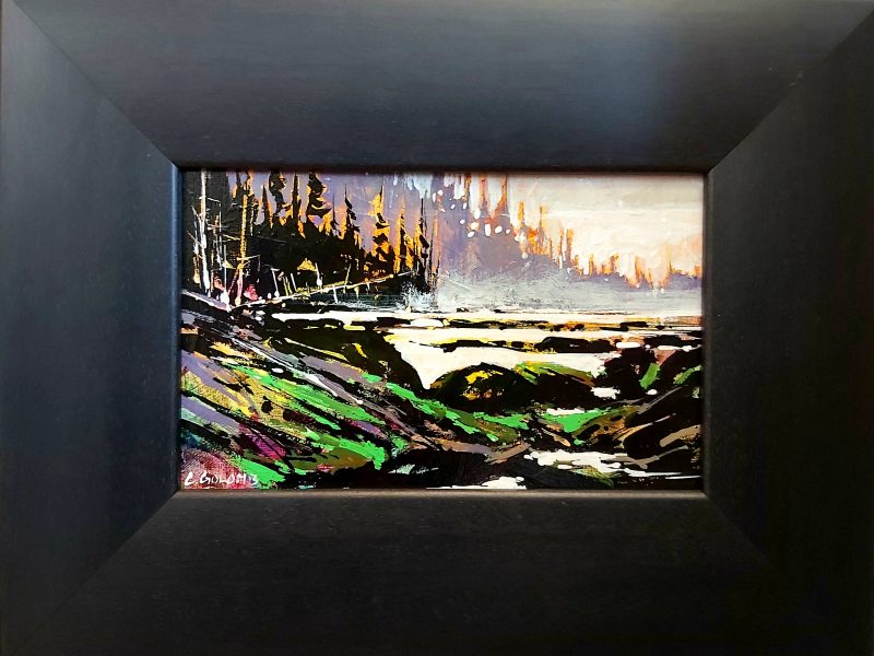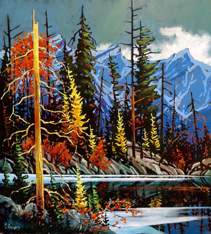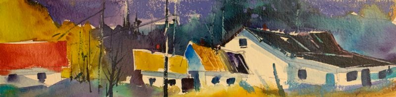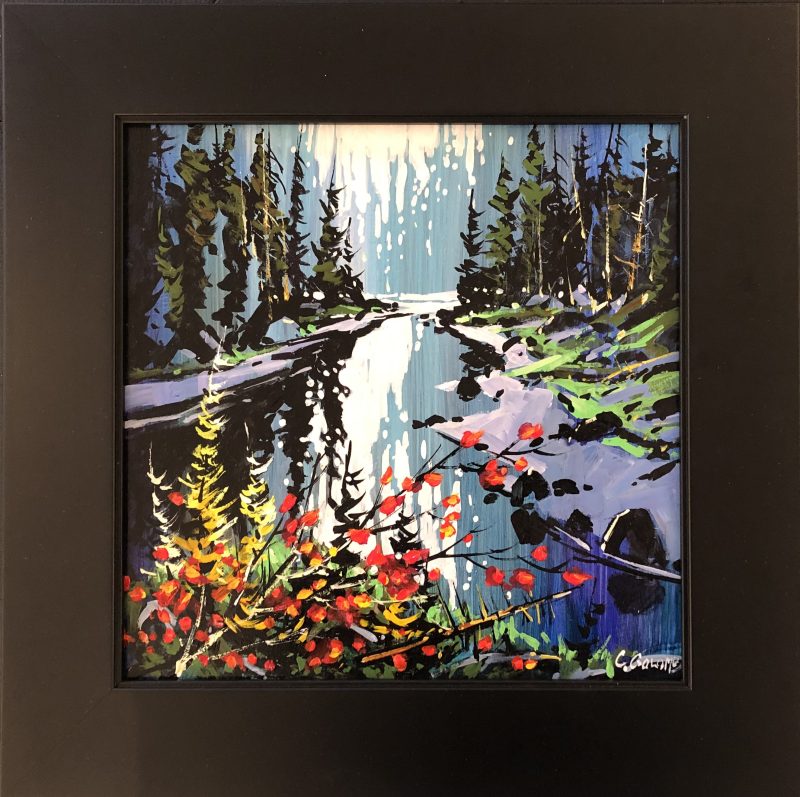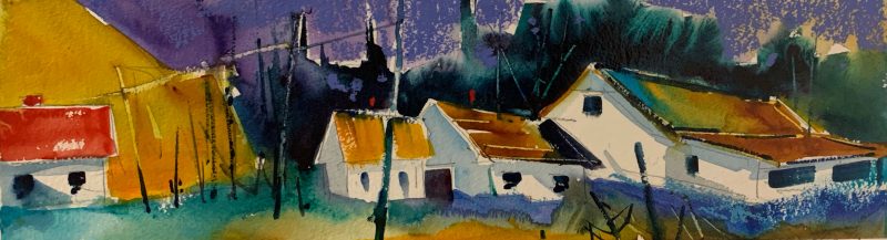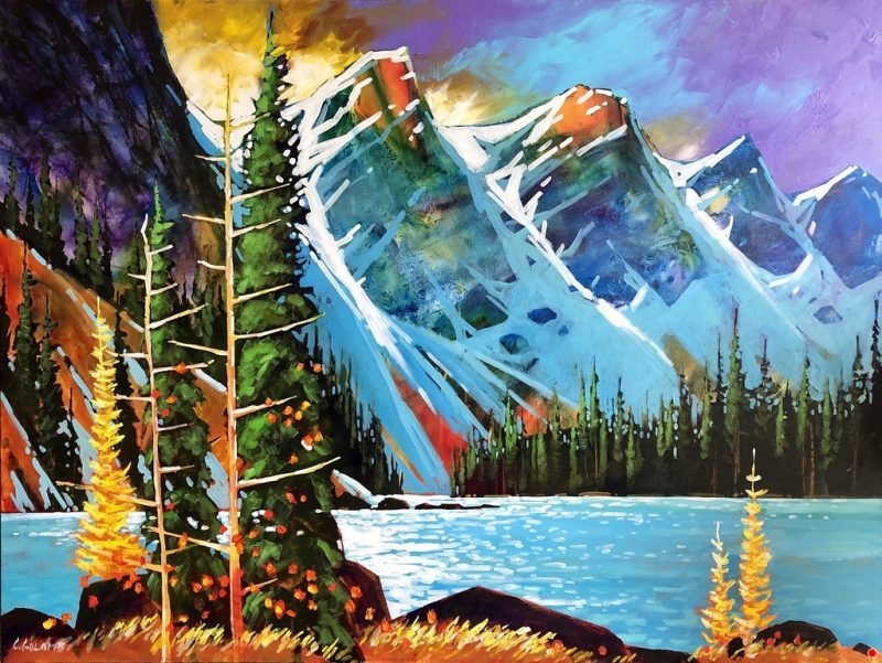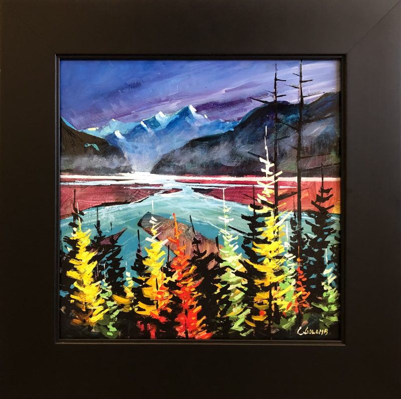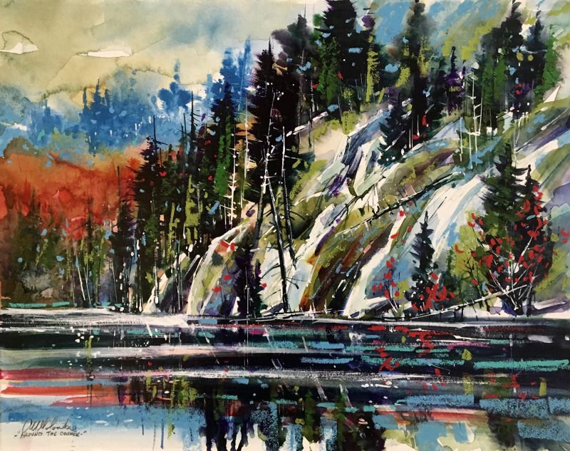 Both his acrylics and watercolours are best known for their bold use of expressive colour, while anchored firmly with strong composition and design. Many years of experience now give way to the painting of his unique vision of the landscape. His watercolours are known for their vibrant colours and high contrast – not typical of what watercolour paintings have been known for. They are created on archival watercolour board and then finished with varnish in such a way that no glass is required so that they are framed like any work produced on canvas.