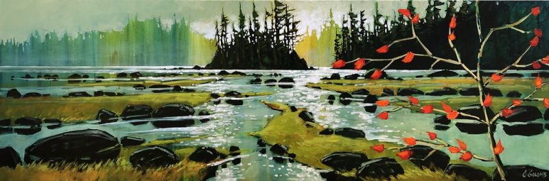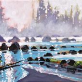 He was also inspired at an early age while watching a CBC documentary about Toni Onley. “I was very young when I saw the film and was quite taken by the apparent ease with which he could create such emotionally moving pieces of art with a single fox tail brush and a few simple brush strokes. Clearly, there was more going on here, and I felt compelled to look at this more closely. This was the beginning of my passion for painting. Starting with watercolours, I learned that less is more, and to work with the medium.”
