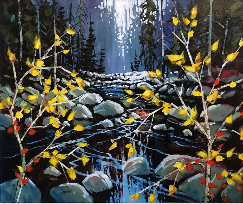 His works are collected throughout the world and enjoyed by those who identify with an emotional response to their surroundings as the paint flows expressively seducing the viewer to participate in an exchange of varied texture, and strong colour combinations. The viewer’s emotional response that his art triggers engages one to participate in a heightened poetic journey to places of serenity and peace. His works can be seen throughout Canada in many fine galleries.