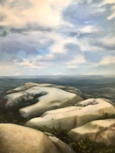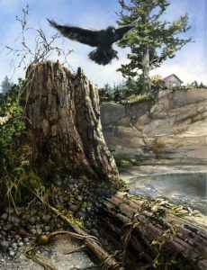 She was accepted into the Langara Fine Arts Program, them went on to study at Emily Carr. “Even so, it took a while to find my way. I tried all the materials, experimenting with watercolours, acrylics, oils, charcoal, and every combination therein. They all have enjoyable qualities but when the ideas for paintings started brewing, especially with the bigger ones, I needed time to think because it’s the story that matters – you are expressing something to the viewer. You can draw with a burnt stick if you had to, but as I see it, the viewer has to get a sense of the story, and the mood associated with it. Oils, with their slow drying time are best for that. They give me time to think, make changes, and blend colours.”