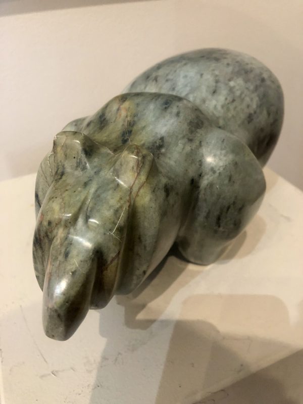 Her passion for sculpting inspires her to translate traditional animal forms into her own interpretation using soft flowing lines and strokes to transform the hard stone into a tactile animal that almost demands to be stroked.