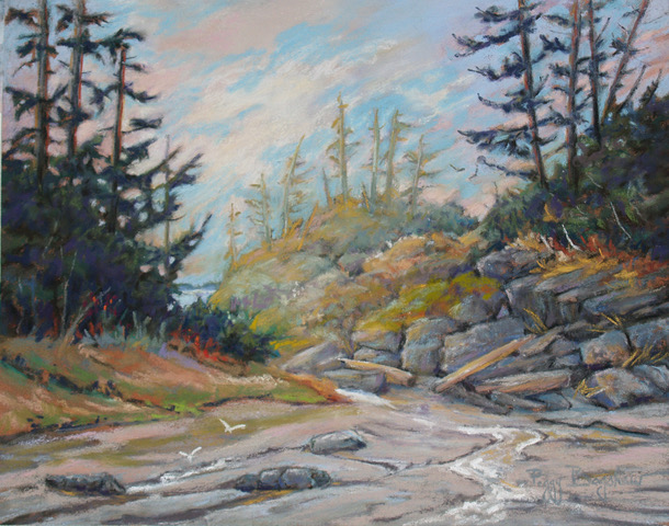 Peggy works exclusively in the pastel medium, focusing on landscapes. Her work is found in corporate & private collections worldwide. For six years running, Peggy has been chosen for the juried Sidney Fine Art Show. She is also a member of the Pender Island “Art-Off-the-Fence”, with a popular two-day outdoor art show in July.
