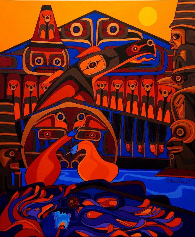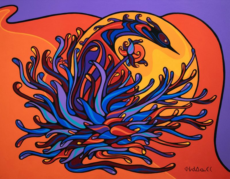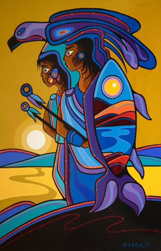 Given his extensive knowledge of Norval Morrisseau’s work and career, he has created and maintains the website Morrisseau.com to honour his mentor through the maintenance of an authentic record of Morrisseau’s oeuvre. Ritchie Sinclair, as Stardreamer continues to feel the honour and responsibility of being the late Norval Morrisseau’s only artistic apprentice of European extraction. Balancing the values of two cultures, Sinclair feels he belongs to neither one. His work is a hybrid, embracing the strengths of each culture in order to create works which give insight into the qualities of both. His art embraces of the whole family of humanity, while transcending borders and cultures. Sinclair’s brilliantly coloured paintings exhibit sensually rich archetypes that resonate with a profound, yet simple message.