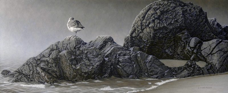 He has never looked back. In forging his own unique approach over the years, Allan feels gratitude for many fellow artists. Especially important in his childhood were Glen Loates and Leon Parson, the latter featured in his grandfather’s Field & Stream magazines. During his youth, Robert Bateman, Fenwick Lansdowne, Roger Tory Peterson and George McLean figured large. In adulthood, it was Ray Harris Ching and Gustave Caillebotte.